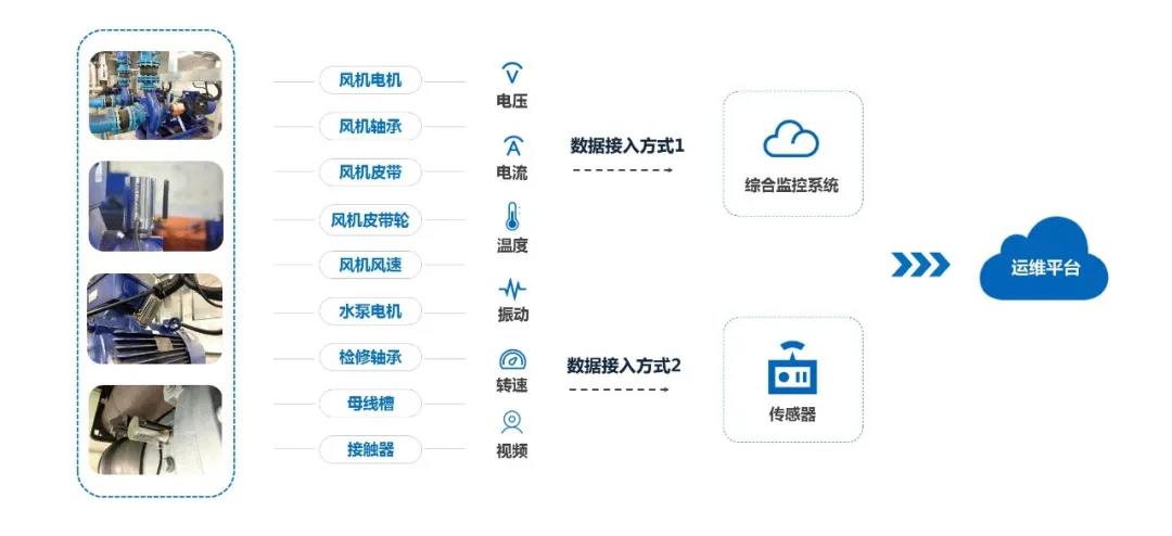 利用ISCS系統或借助傳感器對風機、水泵、接觸器、母線槽等進行數據采集,整合分析大數據資源。